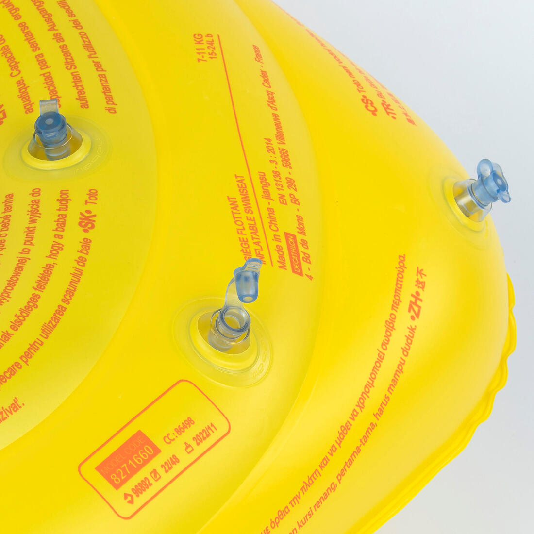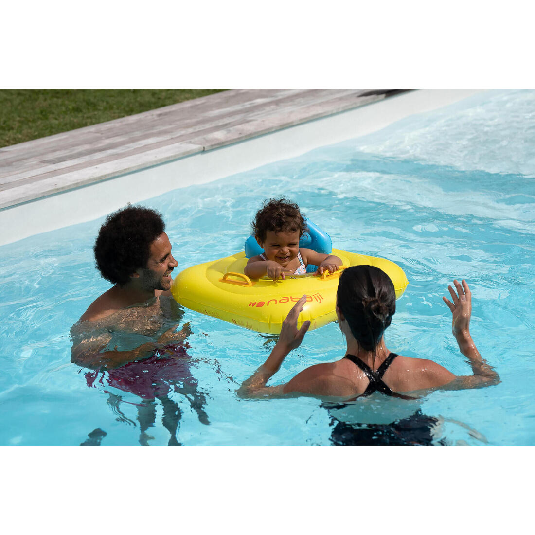 DECATHLON propone 3 experiencias: "Descubrir el agua", "Aprender a nadar" y "Progresar bajo el agua". El flotador inflable con asiento para bebé pertenece a los productos para "Descubrir el agua": el niño descubre el medio acuático y necesita mucha flotabilidad para sentirse más seguro en este nuevo entorno. Cómodamente instalado en su flotador con asiento y guiado por un adulto, tu peque disfrutará de un paseo acuático y observará lo que pasa bajo el agua gracias a la ventana.