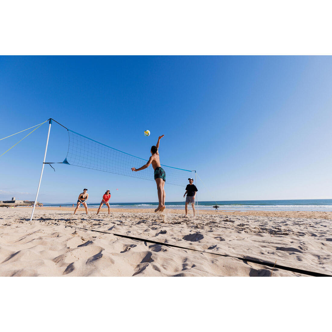 Fácil de montar y desmontar, ¡el set perfecto para descubrir el vóley playa en familia o con amigos!