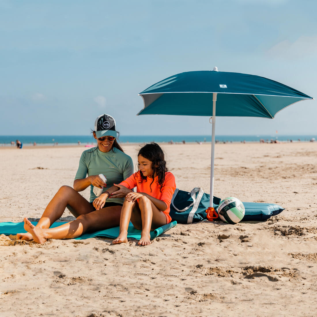 Sombrilla UPF 50+ ideal para protegerse del sol en la playa. Para al menos 1 persona y también para proteger el equipo (bodyboard, surf, etc.) de los rayos UV y del calor.