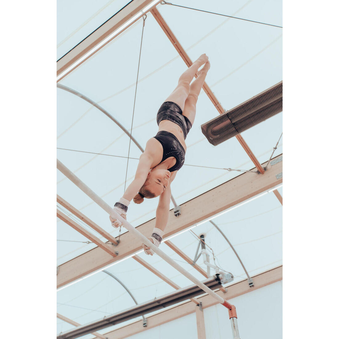 El consejo de nuestro equipo de diseño: el equipo perfecto para los entrenamientos de la gimnasta está formado por un leotardo sin mangas, un top y un short o unos leggings. Este conjunto le permitirá efectuar sus elementos gimnásticos con total confianza y libertad para poder pasar a continuación a las pistas de competencia.