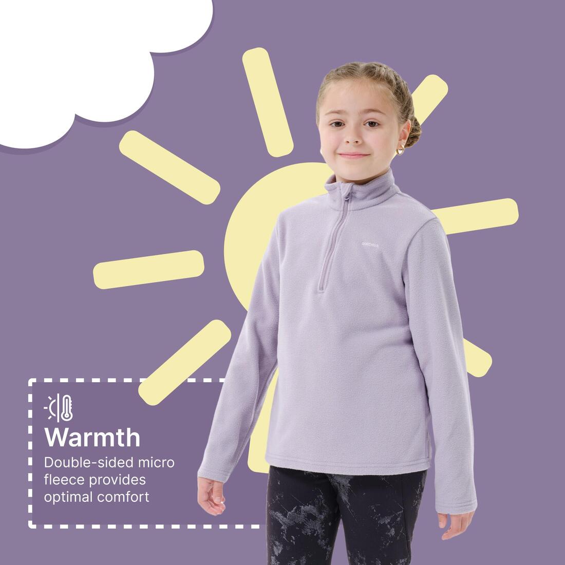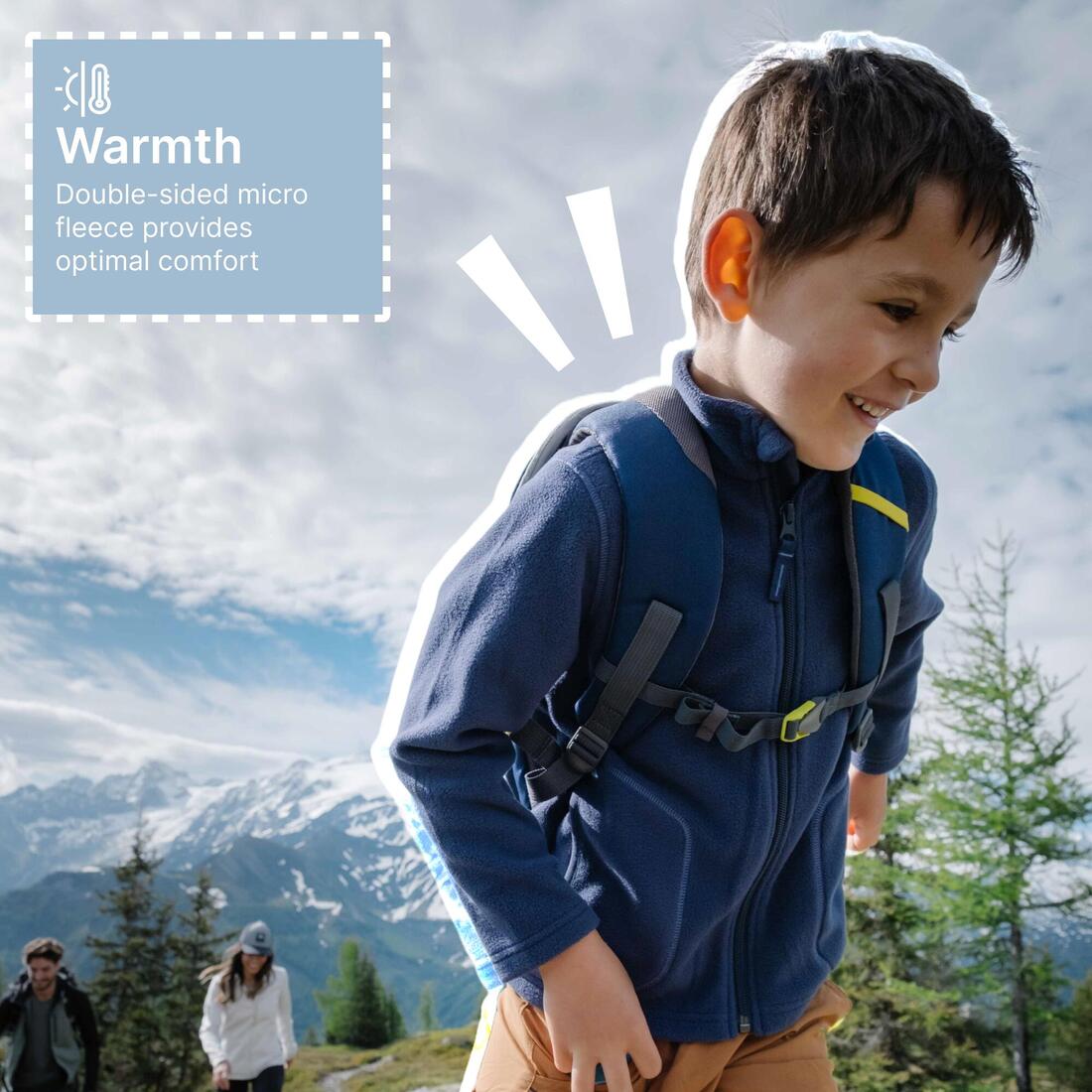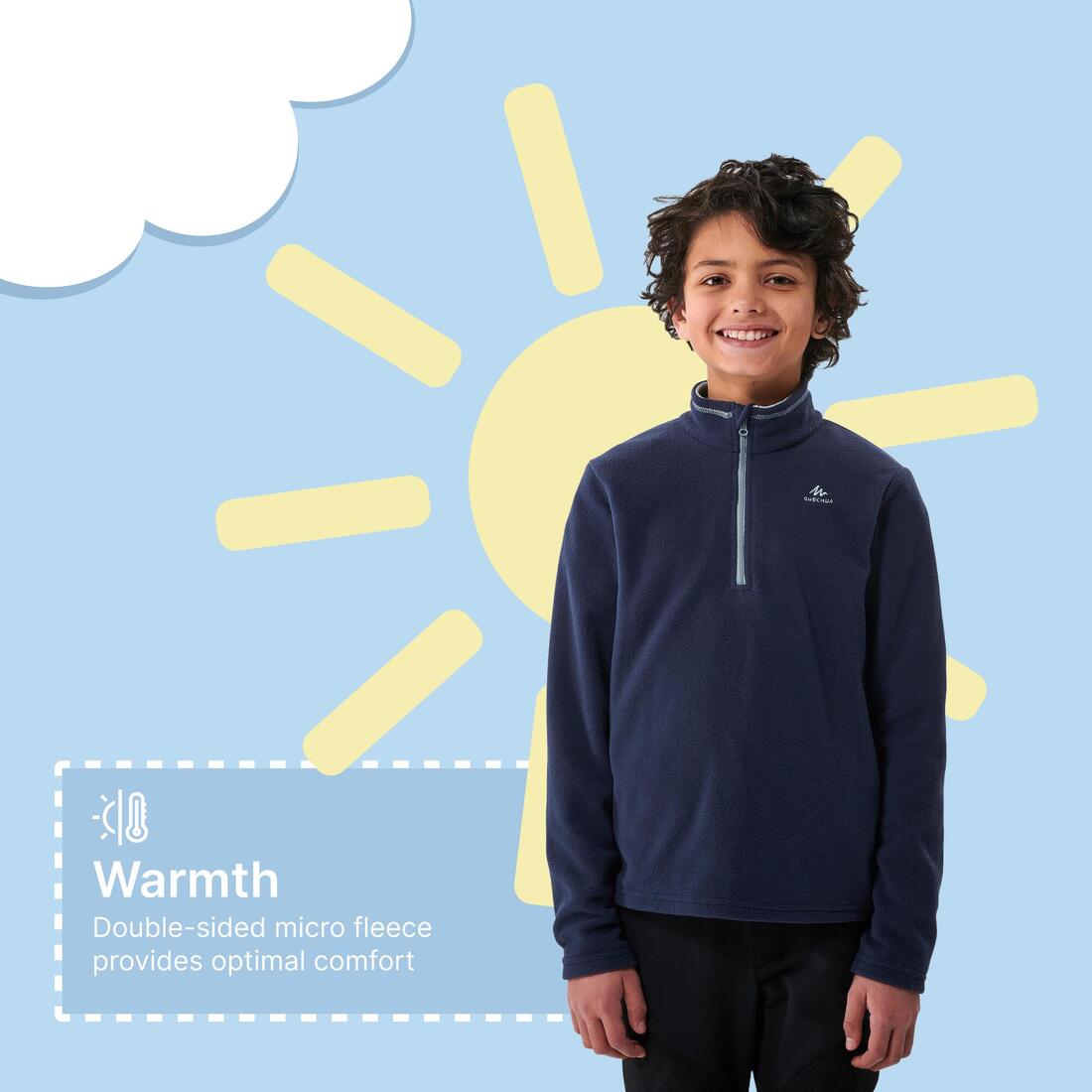 El equipo de padres de jóvenes senderistas ha concebido esta sudadera polar cálida y transpirable para proteger a niños durante actividades al aire libre.