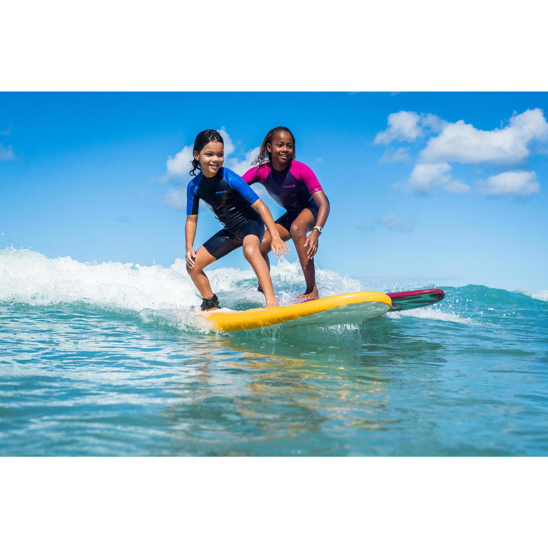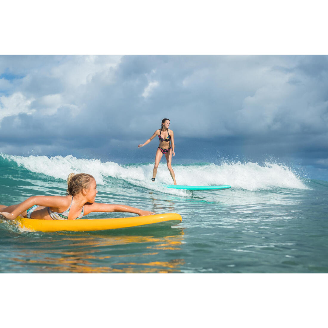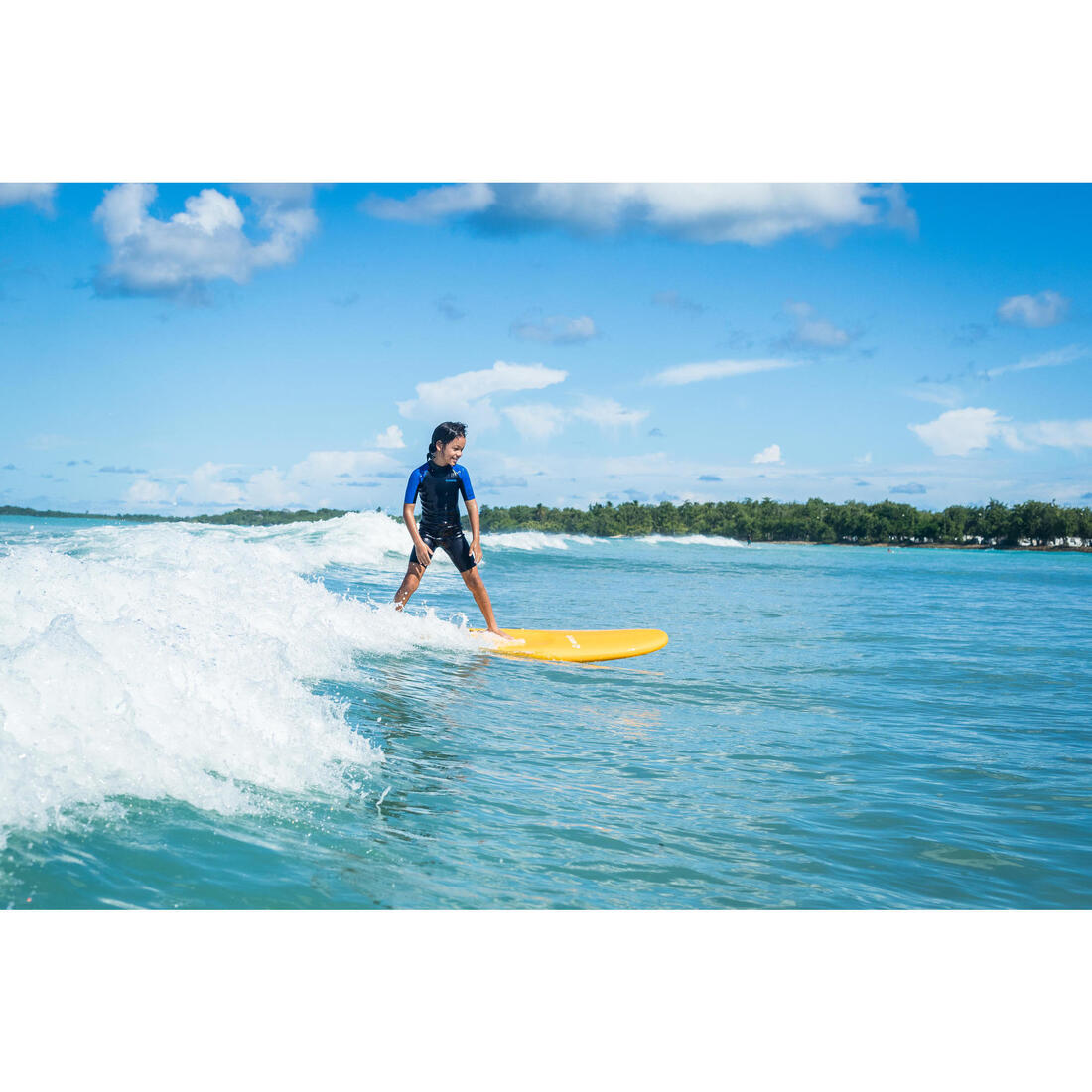 Ideal para que el niño tome sus primeras olas, gracias a su generoso volumen y a sus bordes. Esta tabla de surf te permitirá también comenzar a evolucionar sobre la ola. Permite surfear en las espumas y en olas pequeñas de hasta 1.5 M o la altura del hombro.