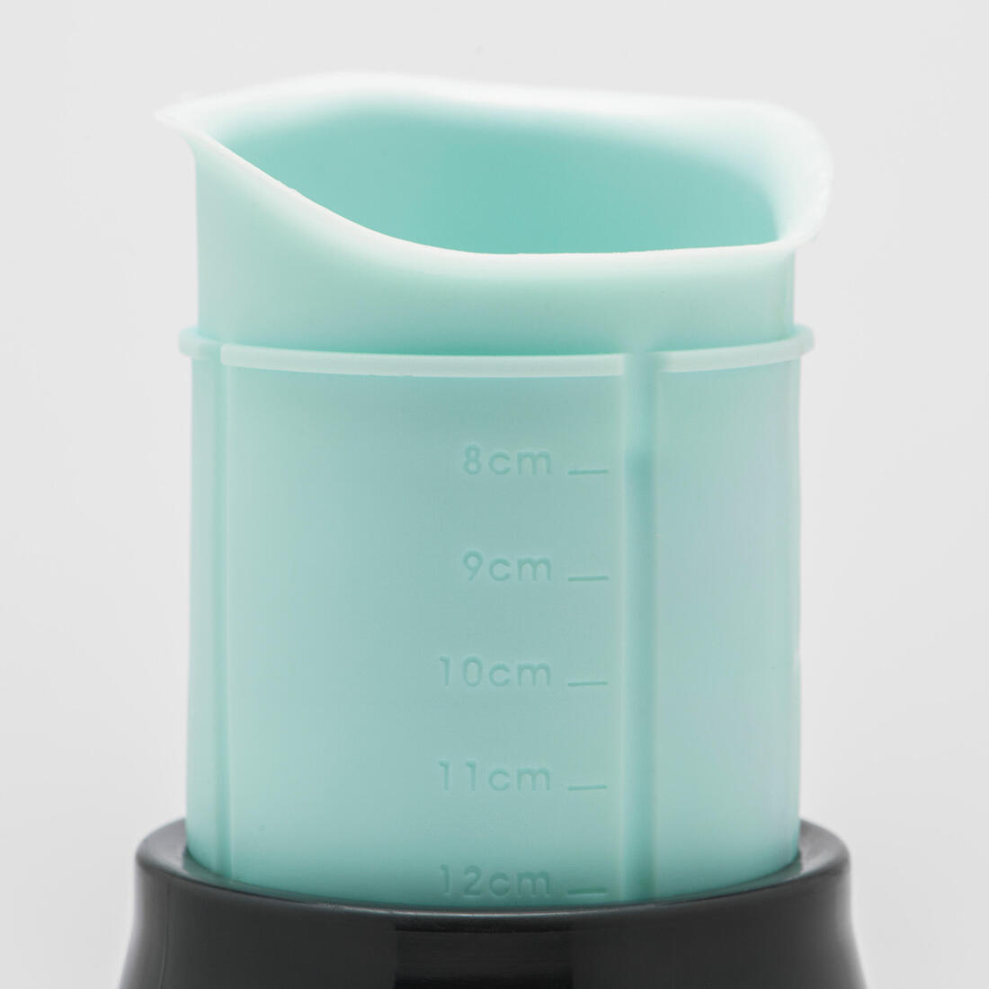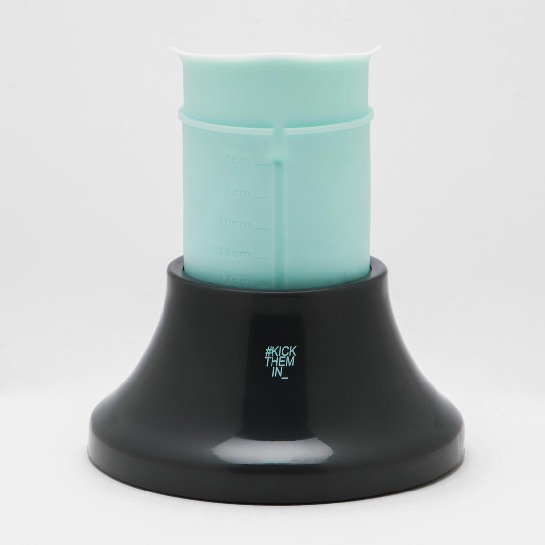 Este tee polivalente tiene una base lastrada, para ofrecer mayor estabilidad. La altura se ajusta fácilmente. Su gradación permite identificar fácilmente las marcas al colocar el balón.