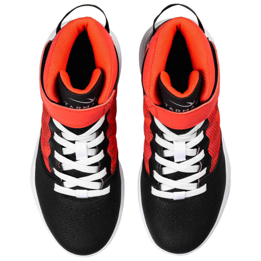 Los niños se calzarán fácilmente estos tenis de básquetbol gracias al sistema de elásticos y a la banda de velcro. El pie está bien sujeto y los agujetas no se desatan durante la práctica.