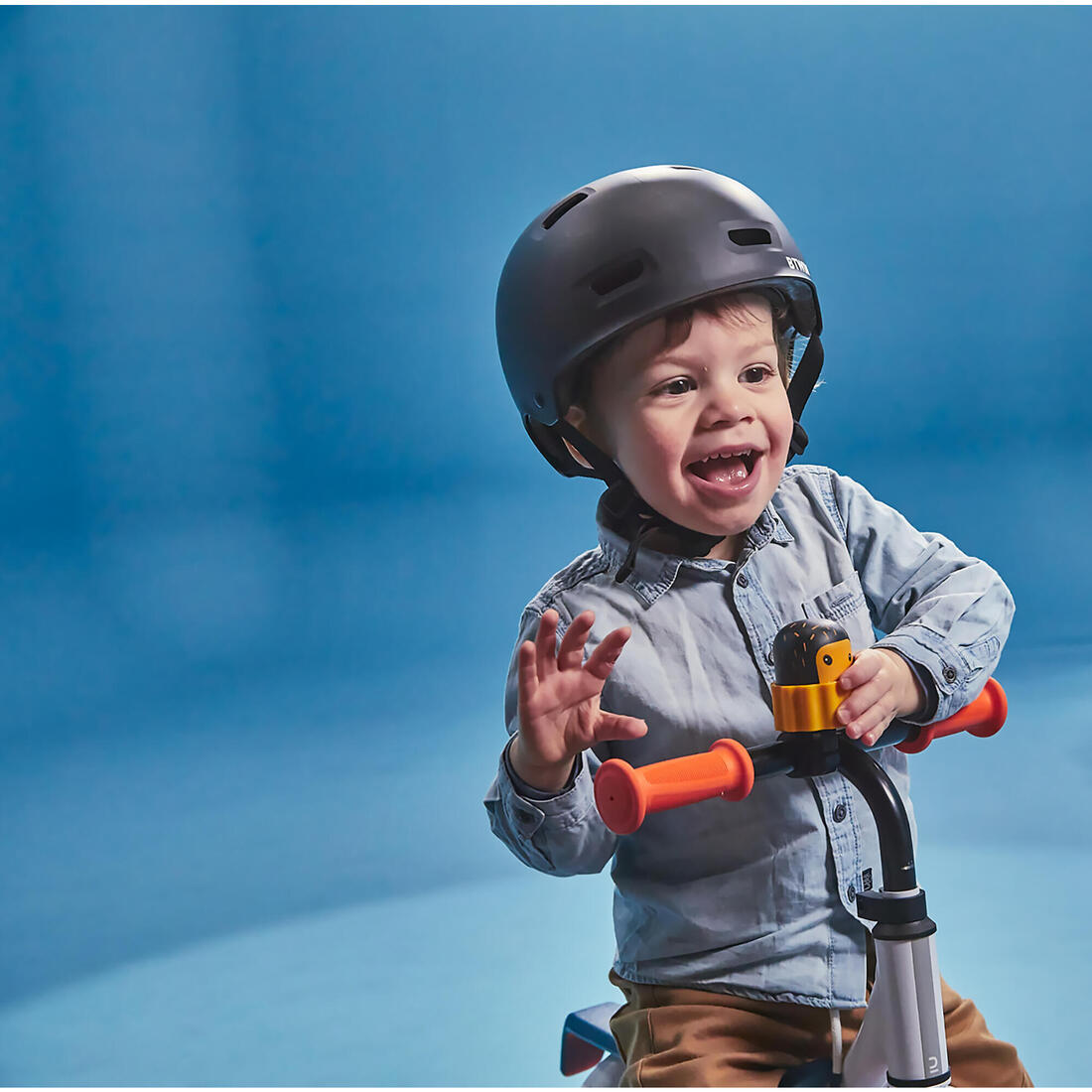 Timbre compatible con manubrios 19 y 22 mm, como el correpasillos B'TWIN, las bicicletas sin pedales Runride B'TWIN, las bicicletas B'TWIN de 14" y 16'' y las demás bicicletas infantiles de 20" y 24".