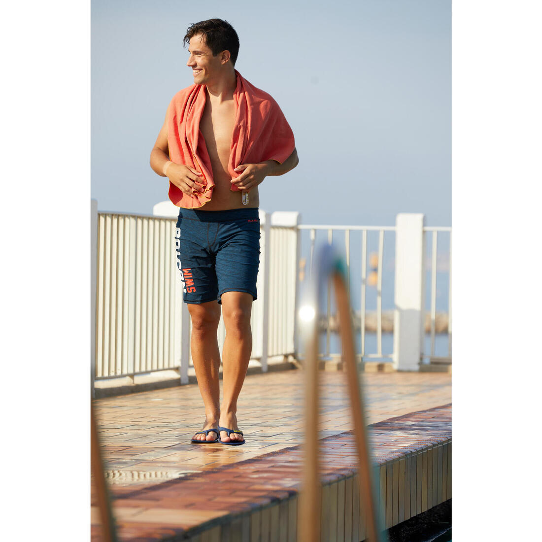 Nuestros equipos de Diseño desarrollaron esta toalla de baño a rayas para nadadores y otros deportistas que desean secarse eficazmente.