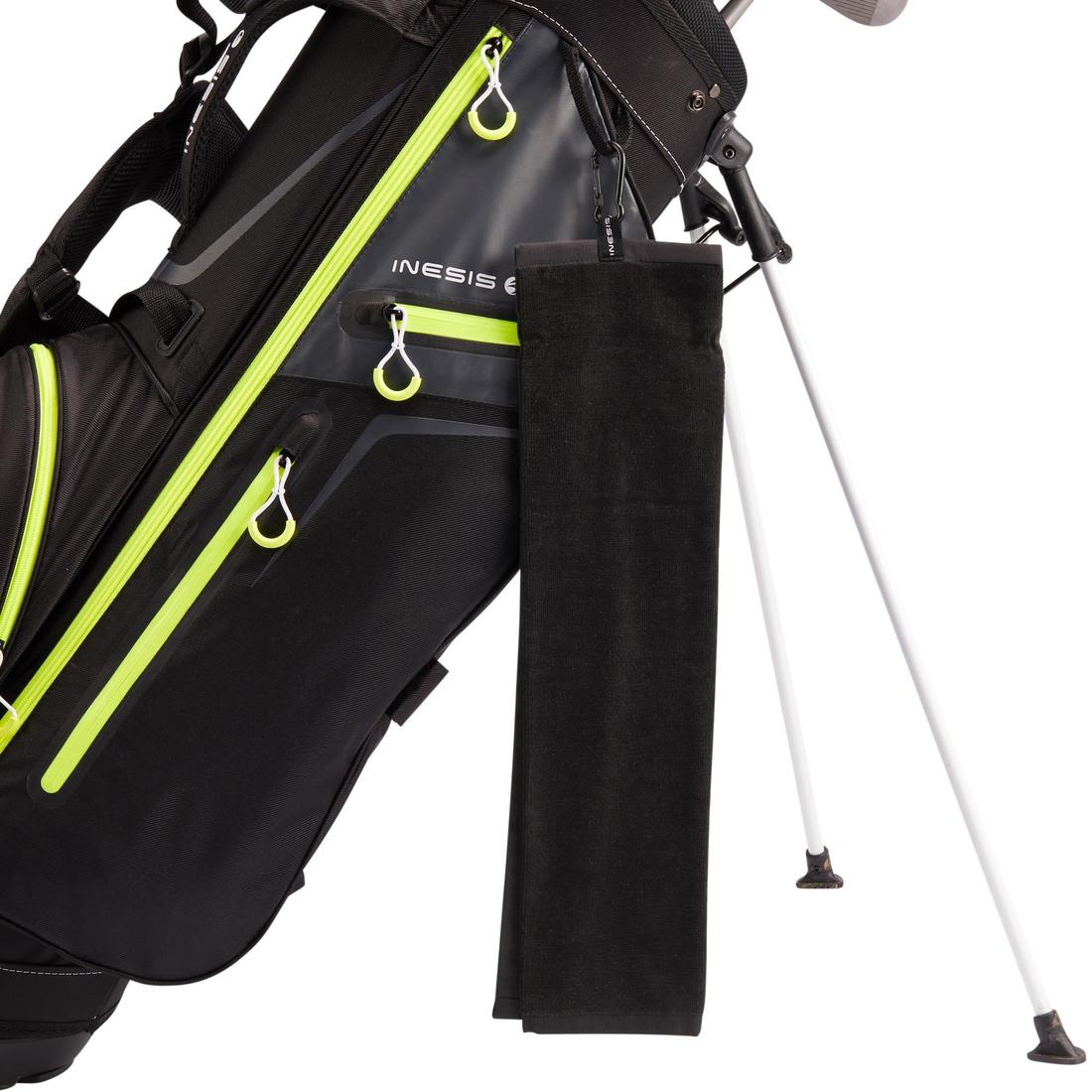 La confección en tres pliegues permite separar el interior de la toalla, para limpiar los palos y las bolas, del exterior, para limpiar las manos y las empuñaduras.
