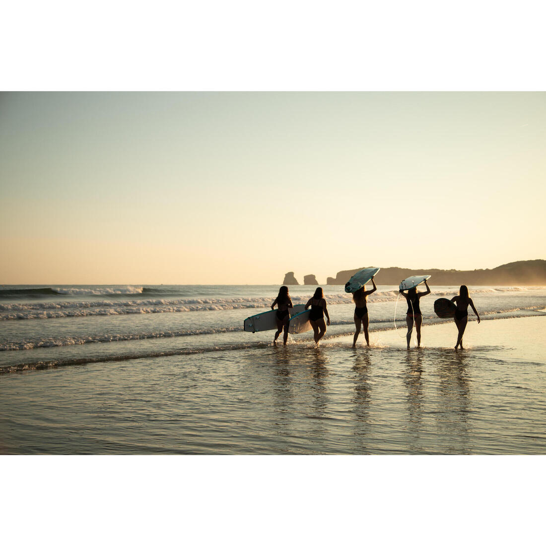 Mujeres surfistas de todos los niveles diseñaron este traje de baño para las surfistas de nivel iniciación que practican en la espuma.