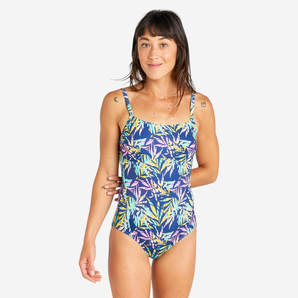 Hemos diseñado este traje de baño para las mujeres que quieren un traje de baño simple, cómodo y elegante, con la espalda en U muy despejada. El ingenioso ajuste en la espalda impide que los tirantes finos se caigan y asegura una mayor sujeción del pecho. Escote redondo y moderado de sujeción ligera, especialmente para mujeres con busto pequeño y mediano. Corte de pierna medio. Fácil de poner.