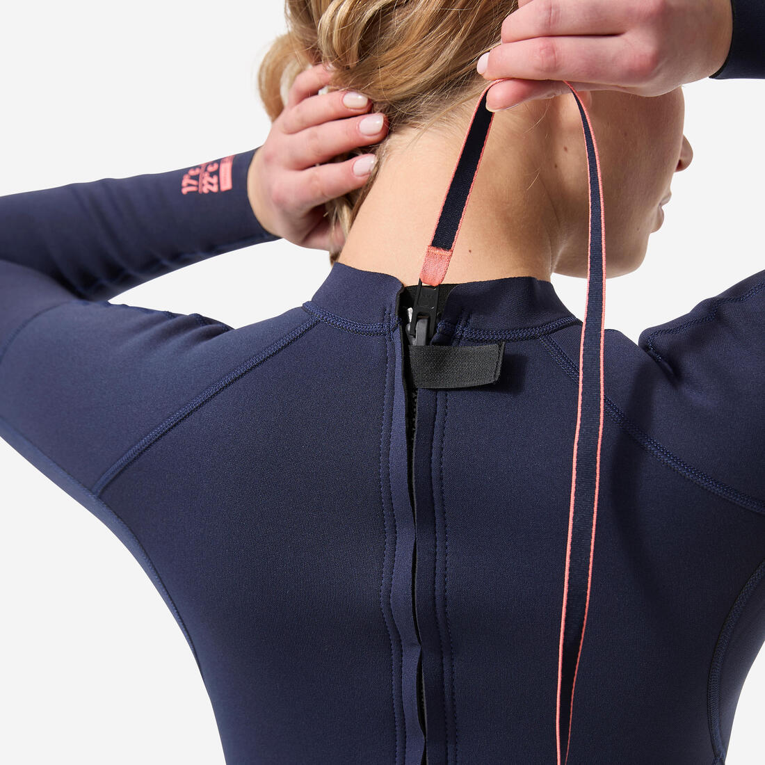 Nosotros, practicantes de surf de todos los niveles, diseñamos este traje completo para la surfista principiante que practica en la espuma de las olas.