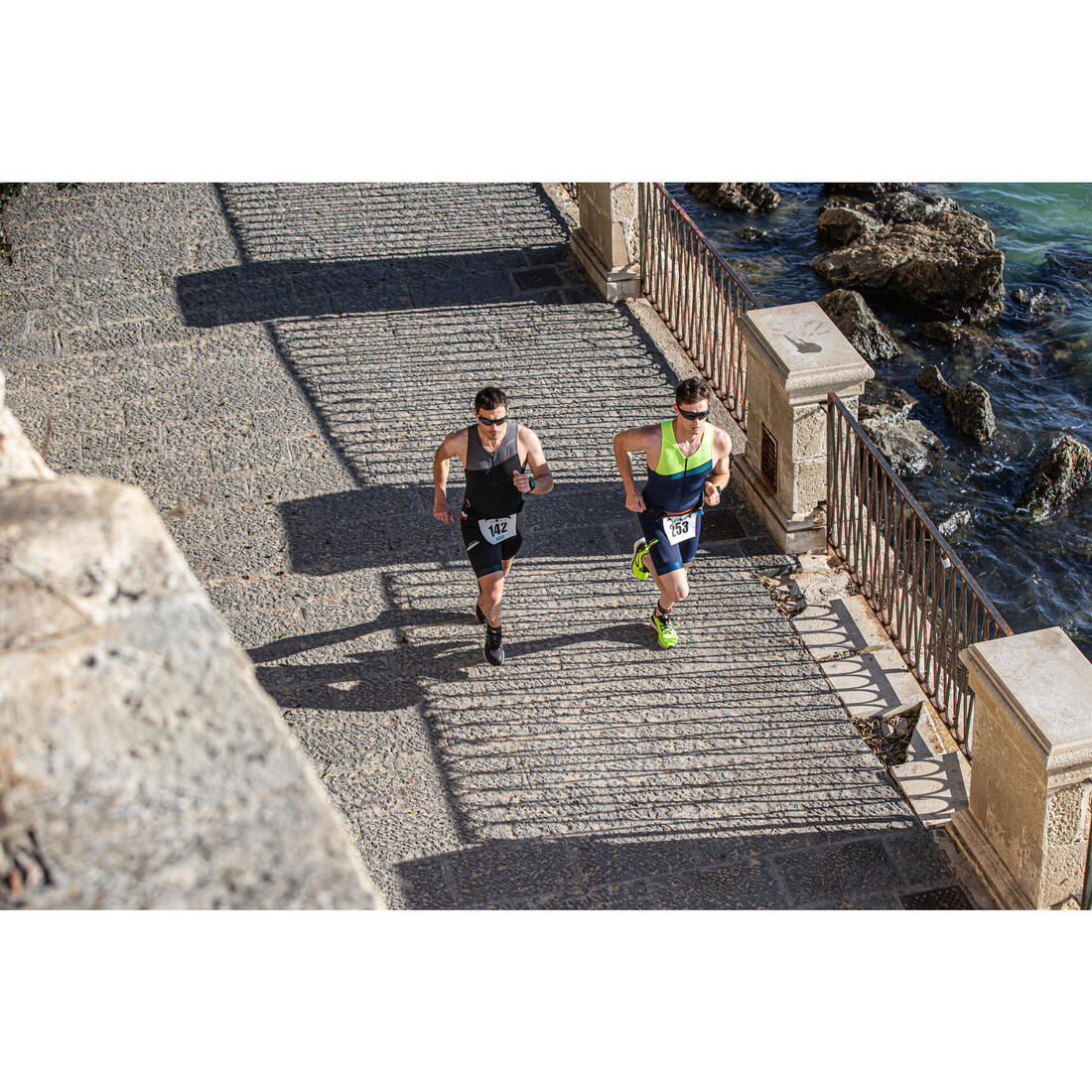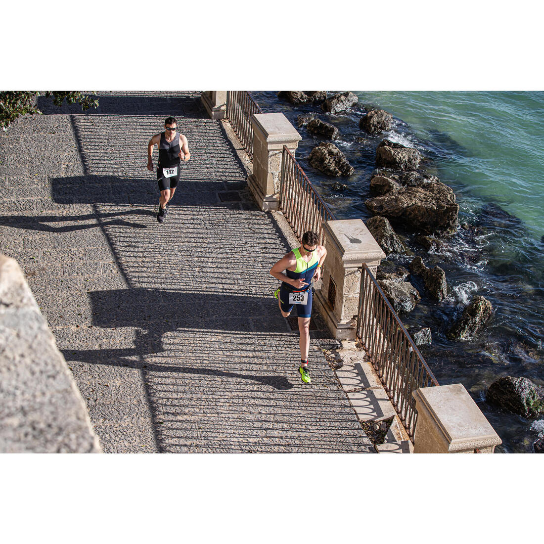 Gracias al material de este traje de triatlón, el secado se produce de manera ultrarrápida durante la transición natación/bicicleta, para no pedalear con el cuerpo mojado. Para no perder tiempo durante esta transición, ¡es obvio que nadarás con el traje de triatlón debajo del traje de neopreno! Además, colocamos una gran tira de malla que permite evacuar el sudor allí donde más se produce: en la columna vertebral.
