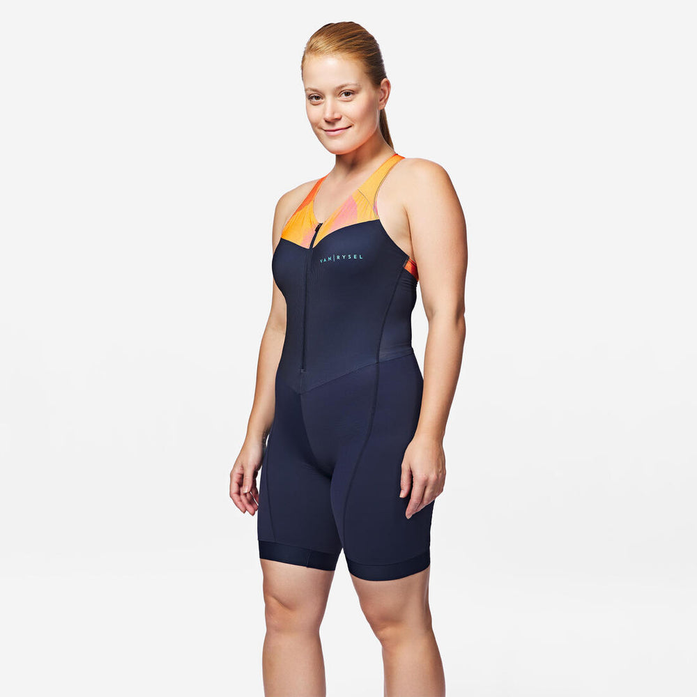 Trisuit de triatlón de corta distancia azul marino con naranja para mujer